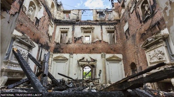 The charred remains of Clandon Park House after a fire that destroyed much of the property in April 2015. © Chris Lacey / National Trust Image.